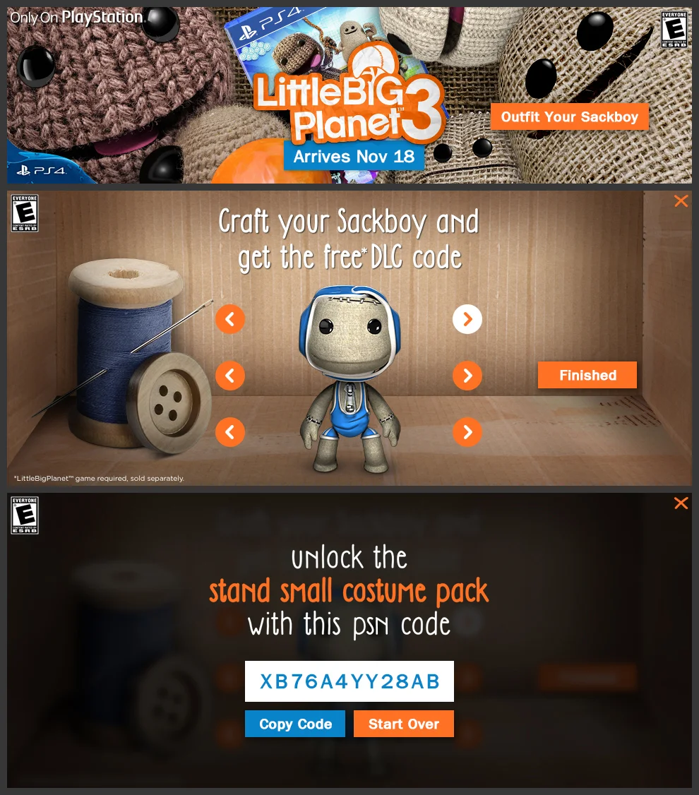This project involved the development of an interactive banner, providing users with the unique opportunity to personalize their own Sack Boy character. Subsequently, users could seamlessly download their customized creations onto their PlayStation console for integration into the game environment.